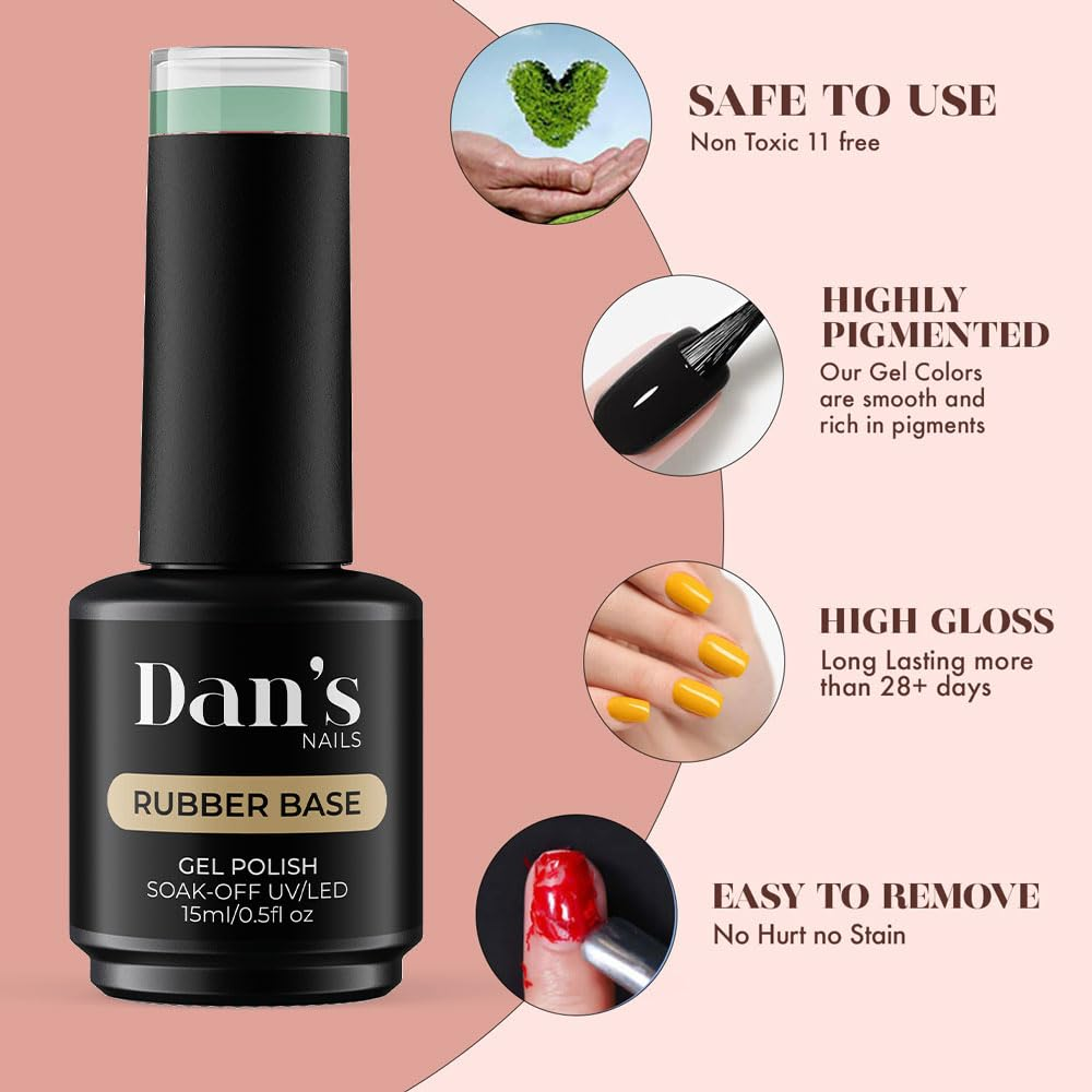 Standalone or Base Gel Coat-This versatile rubber base gel can be used on its own as a base color or as a base gel coat for any gel color. It creates a smooth and even surface, making it easier to apply your favorite nail polish or gel color. Elevate your nail game with the ultimate solution for thin and weak nails, and enjoy stunning, long-lasting results with Dan's Nails Vanilla Cream Rubber Base Gel.