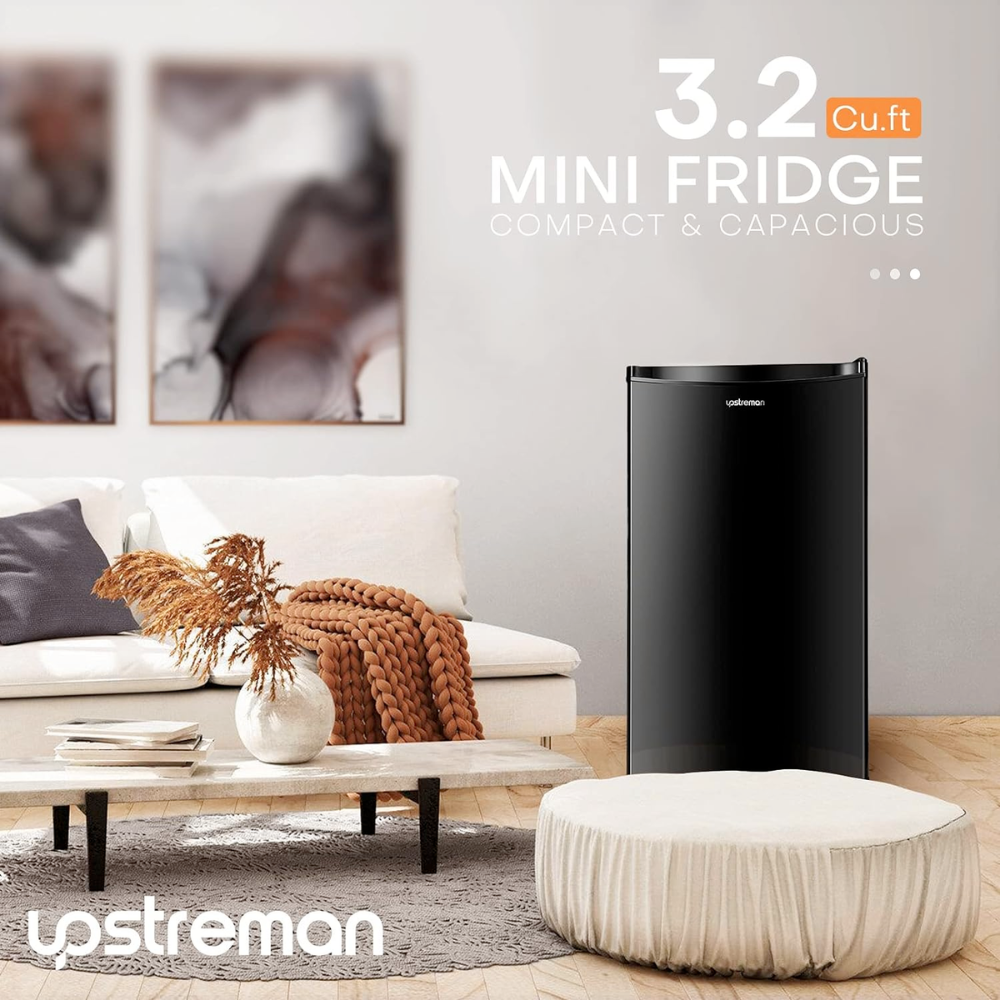 Upstreman-Mini Fridge with Freezer, Single Door, Adjustable Thermostat, Refrigerator for Bedroom