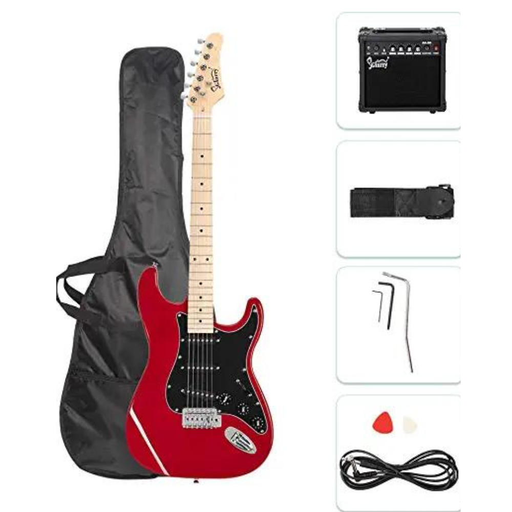 The 6-string electric guitar comes complete with an amp, a bag for carrying it around comfortably while on stage or practicing at home; shoulder strap so that your hands don't have any trouble holding onto their assigned tasks - even if they're wet from sweat!