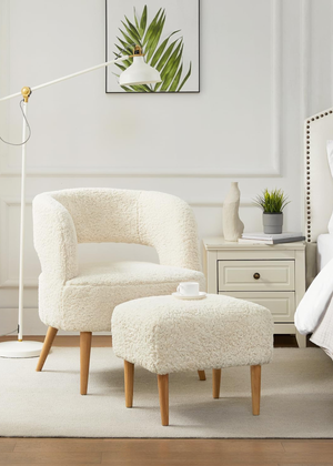 Crafted with premium fuzzy Sherpa fabric and 100% polyester, this armchair (D30.5" x W33.2" x H27.7") offers a soft, skin-friendly, and durable experience. Protective pads on each leg prevent scratches on floors, keeping them in pristine condition.