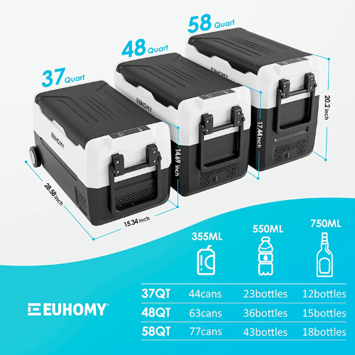 - Bonus Accessories & After-Sales Warranty: The EUHOMY Portable Freezer Electric Cooler comes with two power cords (12/24V DC and 100 - 240V AC power input), making it suitable for car, home, indoor and outdoor use. The product also comes with a one-year quality guarantee. If you have any questions about the car refrigerator, you can contact their customer service team.