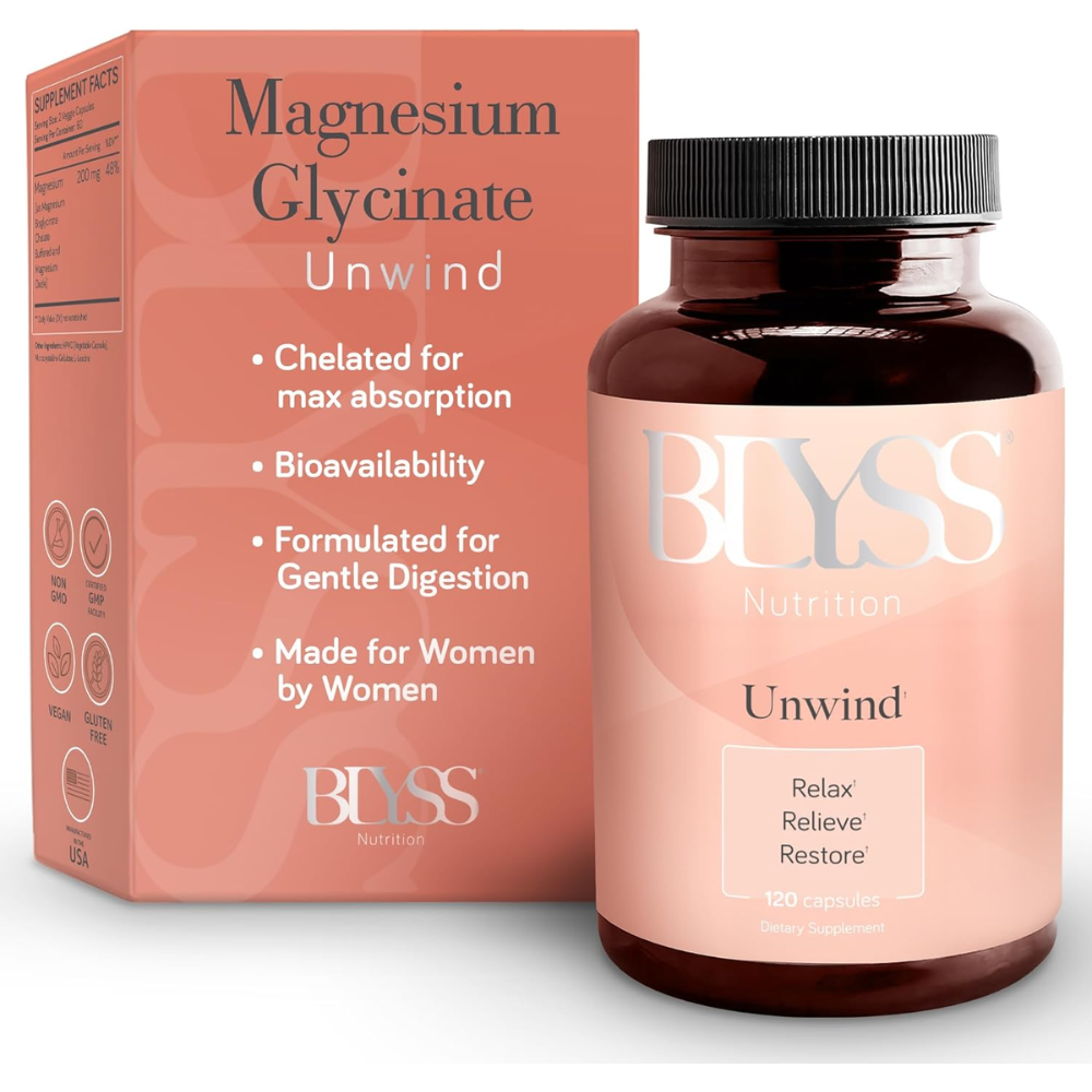 RELAX-UNWIND helps relieve stress caused by magnesium deficiencies. Featuring magnesium bisglycinate, UNWIND is designed to be highly absorbable and gentle on the stomach. It calms the mind and body, promoting a positive outlook by day and restful sleep by night.