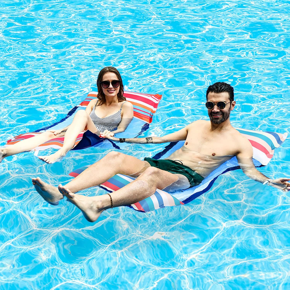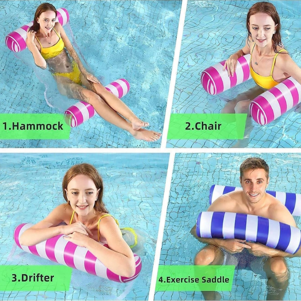 Pool Hammock Water Float with Soft Fabric Mesh: Designed with an inflatable pillow and soft mesh center, this float offers ultimate relaxation by suspending you at the water's surface to keep you cool on hot days.