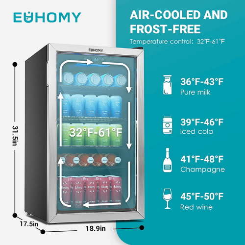 - Energy Efficient: The EUHOMY Beverage Refrigerator and Cooler is designed to be energy-efficient, with a low power consumption rate that can save you money on your electricity bills.