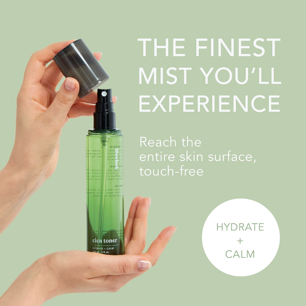 TONE WITH A FINE MIST: Experience the refreshing mist of our 2-in-1 cica misting toner, designed to serve as both a soothing toner and a refreshing mist. The generous toner spray delivers a fine mist, ensuring comprehensive coverage of your face without the need for cotton balls.